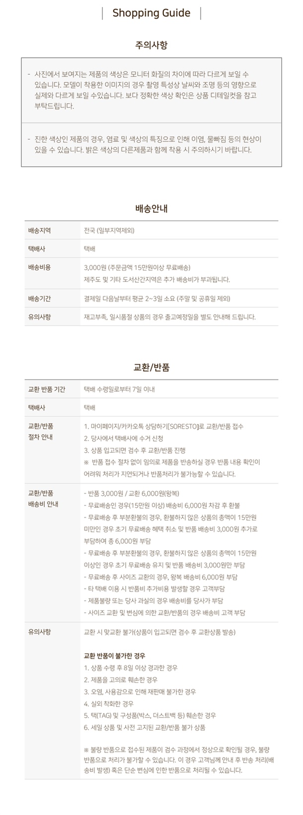 · 변심 교환/반품의 경우 왕복 택배비를 부담해 주셔야 합니다. (택배비 상품별 상이)